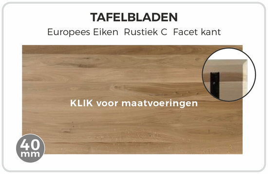 Dit stijlvolle eikenblad met facetrand combineert de natuurlijke warmte van hout met een moderne twist. Het solide eikenhout en de gedetailleerde afwerking van de facetrand geven dit blad een elegante en tijdloze uitstraling, perfect voor elke inrichting.
